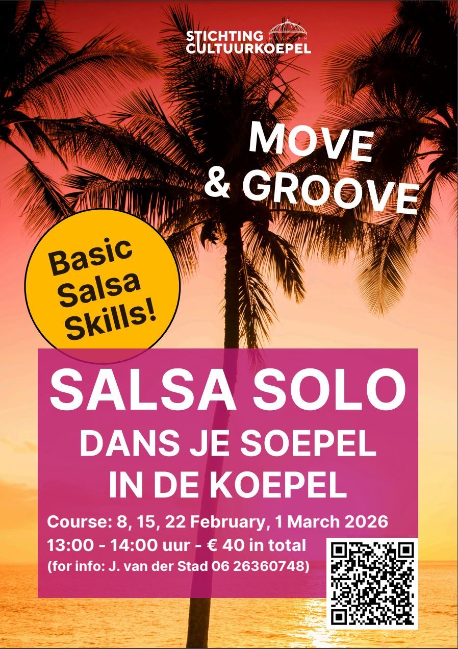 FB Link: https://fb.me/e/70CADELGm De lessen zijn op zondag, 8,15, 22 februari en 1 maart 2026Inloop: 12.45 uurLes: 13 -14 uurWellicht nadansen De lessen zijn voor het aanleren van de basispassen van de salsa,de maat vinden en pittig bewegen.Dit alles met uitleg over de roots van de dans en de muziek. Kleding: luchtigSchoenen: gemakkelijk zittend. Geen [...]
